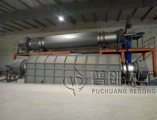 回转炉的热源来自电阻丝,本回转炉采用筒体底部加热方式。因此需要烘干的物料,从进料箱、进料溜进入筒体,即被螺旋抄板推向后。由于回转炉倾斜放置,物料一方面在重力和回转作用下流向后端,另一方面物料被抄板反复抄起,带至上端再不断地扬撒下来,使物料在筒内形成均匀的幕帘,充分与筒内的热气流进行热交换,由于物料反复扬撒,所含的水分逐渐被烘干,从而达到烘干的目的项目现场