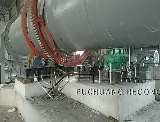 回转炉的热源来自电阻丝,本回转炉采用筒体底部加热方式。因此需要烘干的物料,从进料箱、进料溜进入筒体,即被螺旋抄板推向后。由于回转炉倾斜放置,物料一方面在重力和回转作用下流向后端,另一方面物料被抄板反复抄起,带至上端再不断地扬撒下来,使物料在筒内形成均匀的幕帘,充分与筒内的热气流进行热交换,由于物料反复扬撒,所含的水分逐渐被烘干,从而达到烘干的目的项目现场