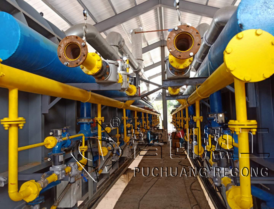 在旋转转筒内,根据处理物料的不同工艺要求和产品性能,需要焊接不同的内部抄板。这些不仅用于帮助产品的前进,而且特别是改善产品流动的传热和混合,例如,在窑出口处使用额外的挡板环,以提高易流动散装固体在窑中的填充水平。加热设备安装在旋转筒体的外部封闭炉膛中.加热是通过燃烧器或者电加热器进行的,根据工艺要求,将燃烧器划分为几个控制组,然后用烟道气体加热回转筒体,得到特定的温度分布。