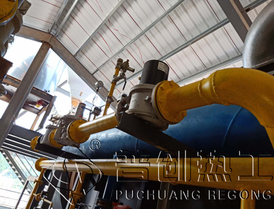 天然气燃烧后的烟气经排放出口统一汇集经换热装置换热后通过助燃风机送到烧嘴,充分余热利用。