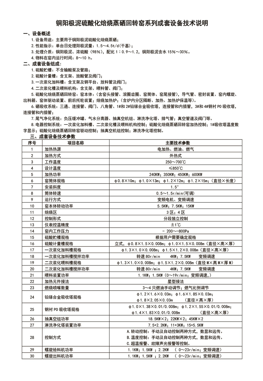 应用范围:主要用于铜阳极泥硫酸化焙烧蒸硒